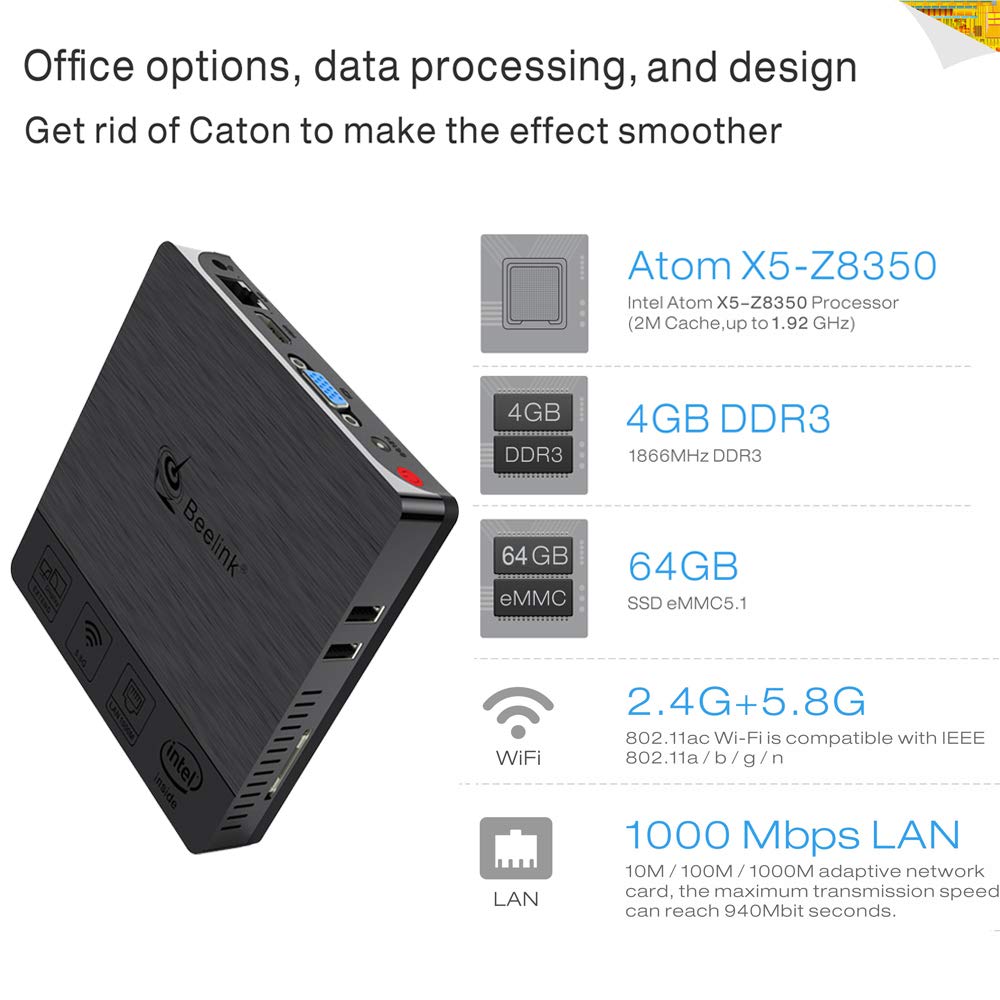 ๐Ÿ‘‰๐Ÿป Beelink BT3PRO II Mini PC, Mini Computer Desktop con HDMI e VGA, Processore Intel Atom X5-Z8350, WiFi da 4GB+64GB, 2,4G/5,8G Dual Band, BT 4.0, 4K, 1000 Mbps LAN, Supporto Windows 10