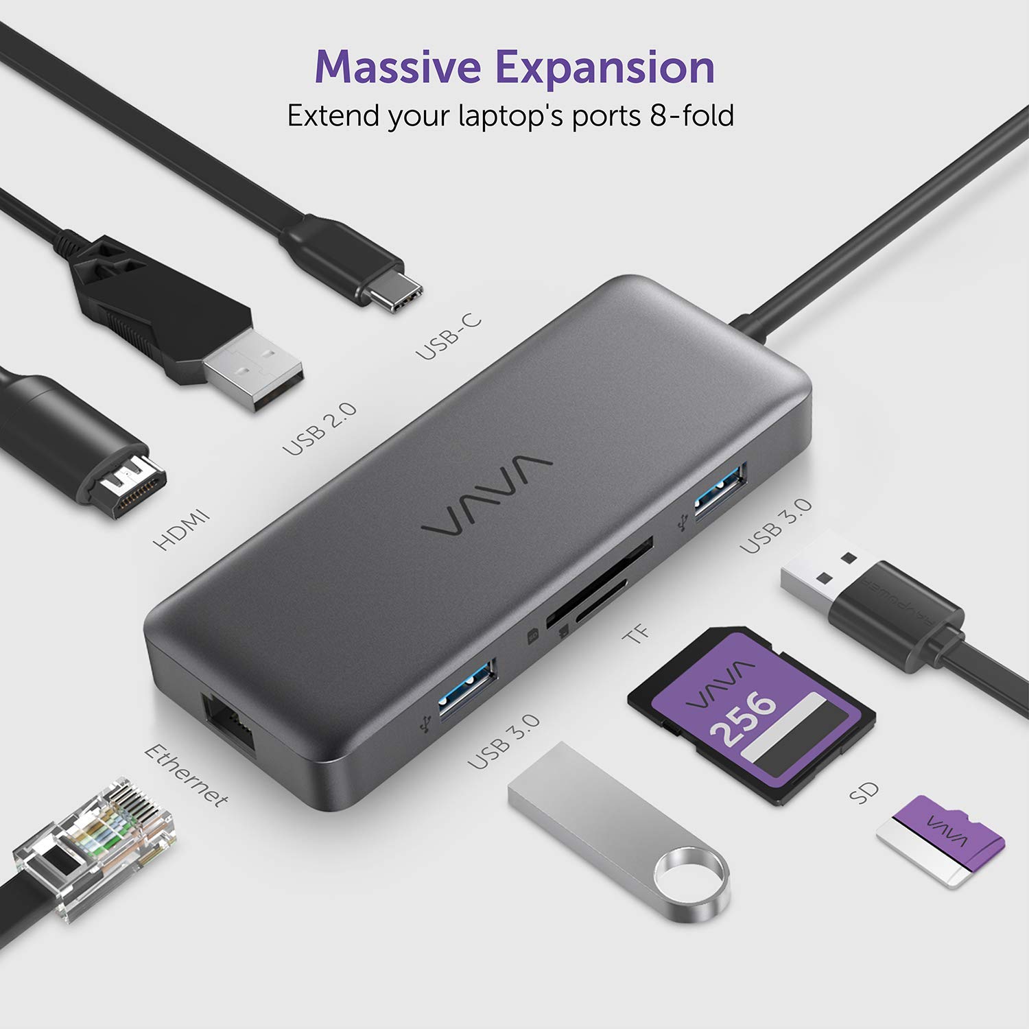 ๐Ÿ‘‰๐Ÿป L'utilissimo Hub USB C VAVA con porta HDMI, 3 Porte USBe USB C (Power Delivery) fino a 100W - ha anche la porta ethernet e uno il lettore di schede SD e microSD!