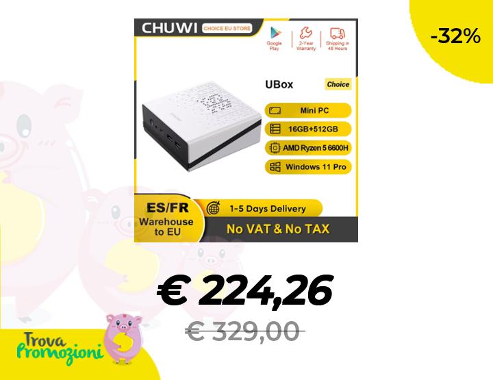 👉🏼 CHUWI UBox Mini PC AMD Ryzen 5 6600H 16GB DDR5 512GB SSD Windows 11 Pro 4K 144Hz Decording WiFi 6 BT 5.2 Estendi M.2 1T*2 650g