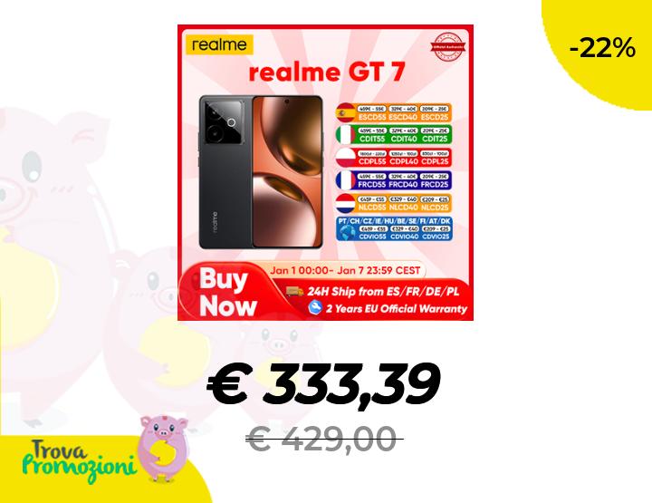 ๐๐ผ Realme GT 7, Dimensity 9400e Flagship 5G, 6,78 pollici, dispositivo di raffreddamento 120 Hz, ricarica rapida 120 W, 7000 mAh, 50 MP 2X, IP69