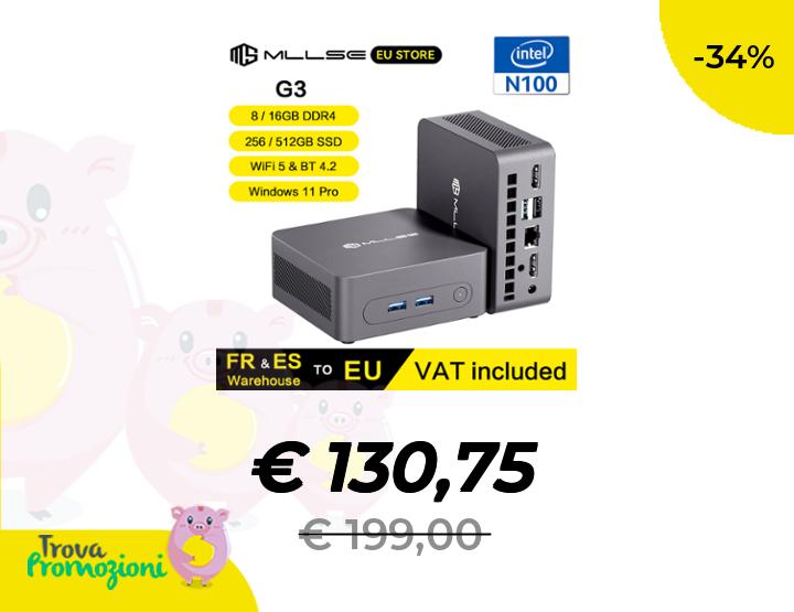 👉🏼 Mini PC MLLSE G3 con processore Intel N100, 16 GB di RAM DDR4, SSD, Wi-Fi 5, BT 4.2, Windows 11, computer da scrivania compatto