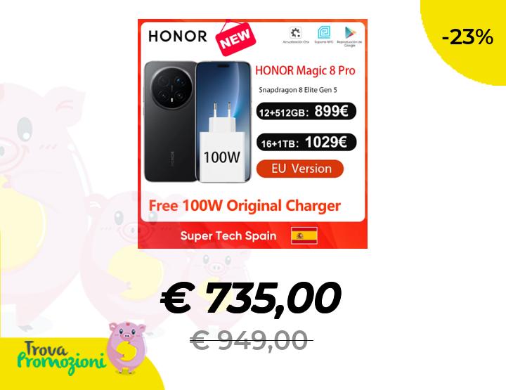 👉🏼 HONOR Magic8 Pro 5G Smartphone Versione Globale Snapdragon 8 Elite Gen 5 200MP Ultra Night Telephoto OIS 6270mAh 100W SuperCharge 80W Wireless 6.71" OLED NFC