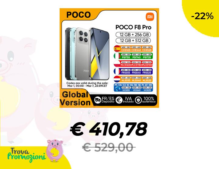 👉🏼 SELEZIONA VERSIONE DA 512GB - Versione globale POCO F8 Pro 5G Smartphone Snapdragon ® 8 Elite Display AMOLED per la cura degli occhi da 6,59" 6210mAh 100W HyperCharge IP68 NFC