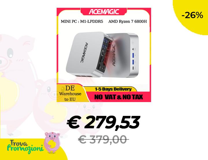 👉🏼 ACEMAGIC M1 Mini PC AMD Ryzen 7 6800H (8C/16T, fino a 4.75Ghz) Computer Mini con Display Triplo 4K, BT5.2/WiFi 6