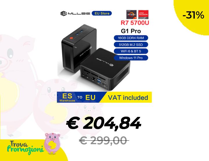 ๐๐ผ MLLSE G1 Pro Mini PC AMD Ryzen 7 5700U 16GB RAM 512GB SSD WiFi 6 BT5.2 Windows 11 Mini computer da tavolo per giochi e lavoro