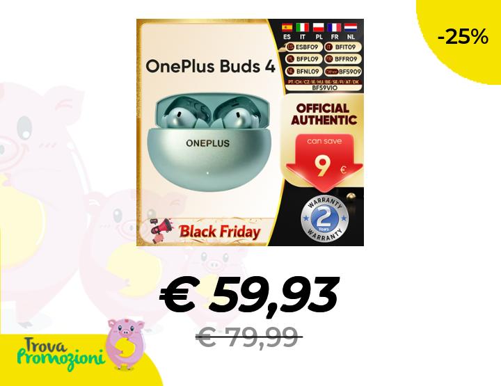 ๐๐ผ Originale OnePlus Buds 4 Versione Globale TWS Auricolare Bluetooth Senza Fili Portatile 55dB Cancellazione Attiva del Rumore 45 ore di Durata Della Batteria