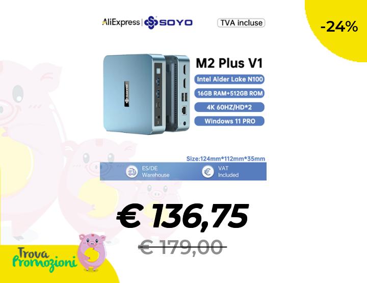 ๐๐ผ Mini PC SOYO M2 Plus V1 con CPU Intel 12a generazione N100 Windows 11 Pro 16 GB DDR4 512 GB SSD Supporto WiFi5 Mini host per computer desktop