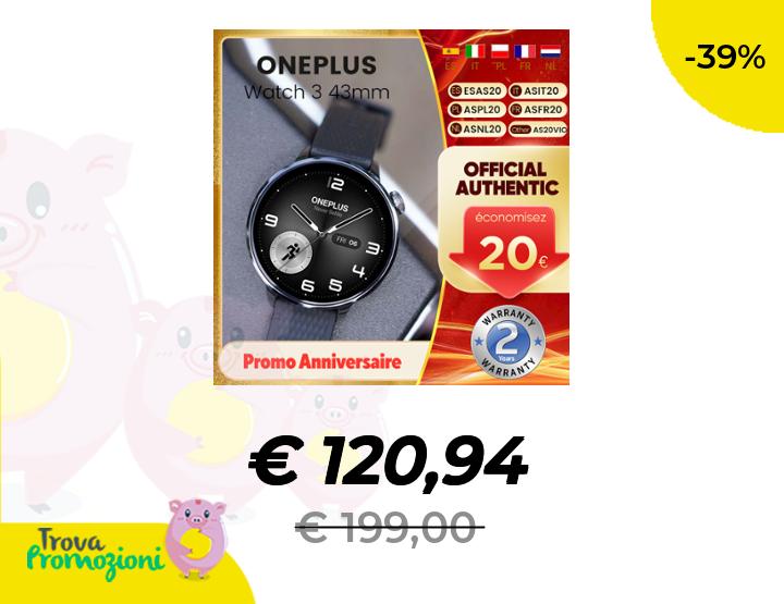 ๐๐ผ OnePlus Watch 3 Versione Globale, Smartwatch da 43mm con Display AMOLED da 1,32 Pollici, Processore Snapdragon W5, GPS a Doppia Frequenza, Wear OS