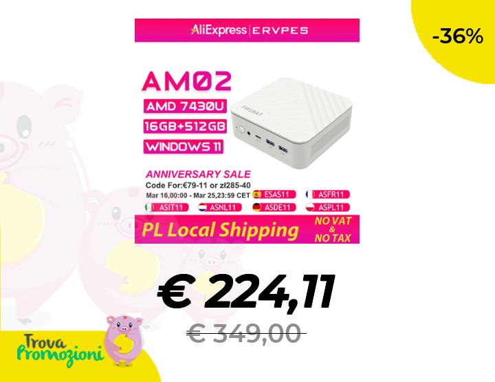 ๐๐ผ FIREBAT AM02 MINI PC AMD Ryzen 5 7430U Windows 11 PC 16GB DDR4 3200MHz 512GB SSD Wifi 6 BT5.2 HDMI 2.1 Computer desktop da gioco