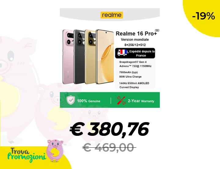๐๐ผ Realme 16 Pro+ 5G Smartphone Versione Globale Snapdragon ยฎ Batteria da 7000mAh 7 Gen 4, Fotocamera Principale OIS da 200MP, Display AMOLED da 6.80''