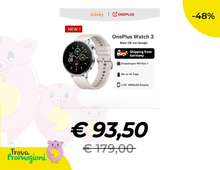 ๐๐ผ OnePlus Watch 3 43mm Smartwatch 1.32 AMOLED Snapdragon W5 Gen 1 7 giorni di autonomia Bluetooth 5.2 NFC SpO2 Monitoraggio della frequenza cardiaca