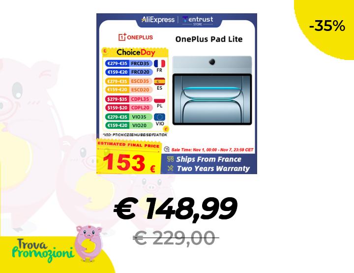 💣 Bombetta anche in versione solo wifi a 136,99€ con coupon