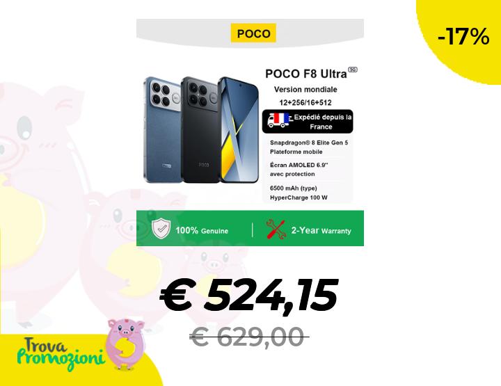 ๐๐ผ POCO F8 Ultra 5G Smartphone Versione Globale Snapdragon ยฎ 8 Elite Gen5 con Fotocamera Principale da 50MP e Display AMOLED da 6,9 Pollici a 120Hz