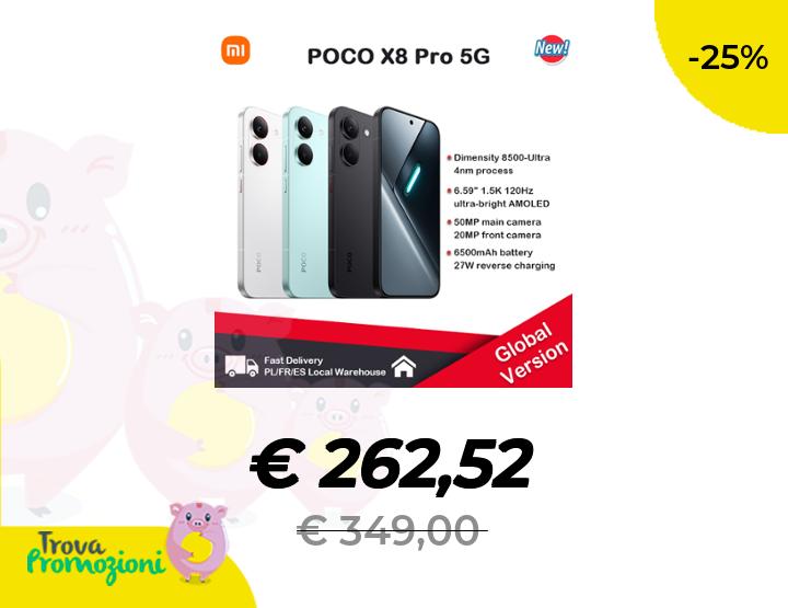 ๐๐ผ POCO X8 Pro - Smartphone 6.59" Dimensity 8500-Ultra, batteria da 6500 mAh, sensore Sony IMX882 da 50MP con OIS