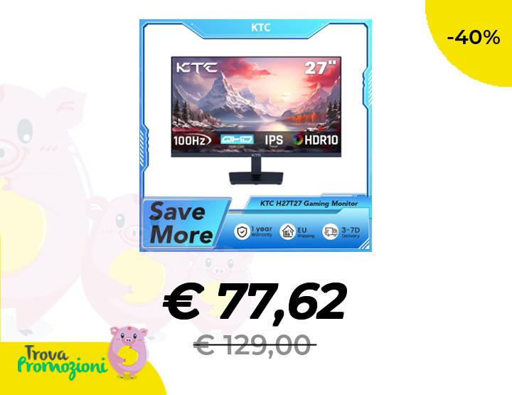 👉🏼 Monitor da gioco KTC H27T27, schermo IPS da 27" 2560x1440, velocità di aggiornamento 100 Hz, tempo di risposta HDR10 di 1 ms, luce blu bassa e senza sfarfallio
