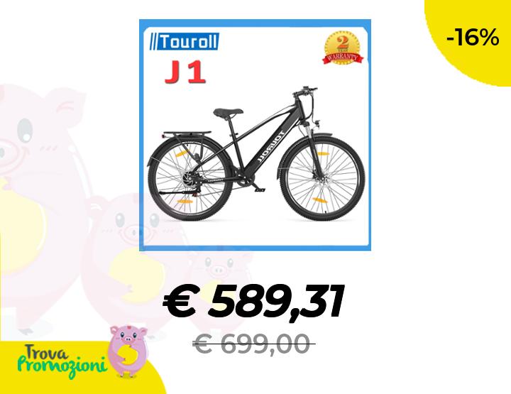 👉🏼 Touroll J1 Bici elettrica da 27,5" con motore da 250 W Batteria 36 V 15,6 Ah 561,6 Wh Portata 100 km Carico da 120 kg Freno a disco meccanico e freno elettronico