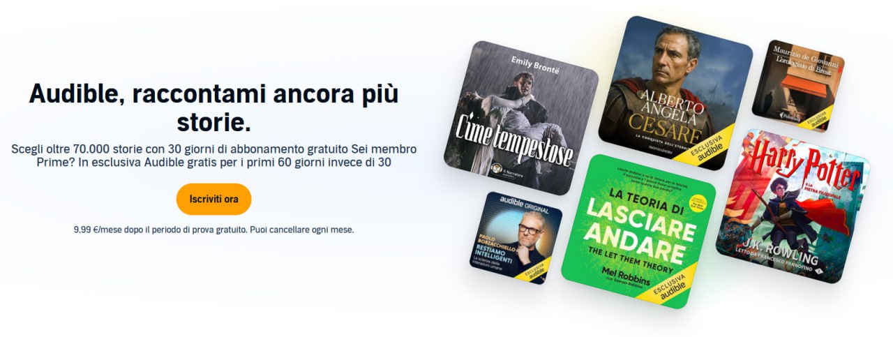 โค๏ธ Se sei cliente Prime, iscriviti ad Audible per 2 mesi di ascolti GRATIS