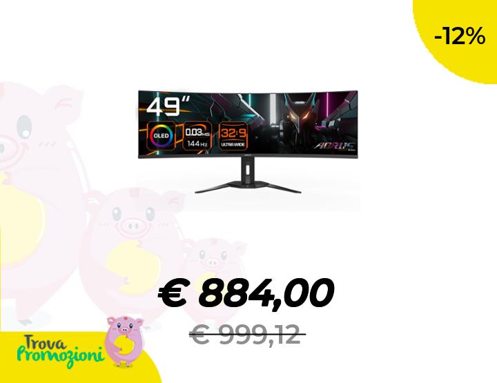 ๐๐ผ Gigabyte AORUS Monitor da gioco curvo CO49DQ OLED - 5120x1440 (DQHD), 1800R, 144Hz, 0,03ms, KVM, FreeSync Premium Pro, HDMI 2.1