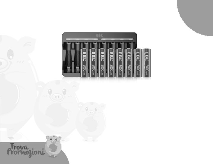 ๐๐ผ EBL 8 pcs AA Batterie Ricaricabili Durature, 1,5V Pile Ricaricabili da 3000mWh + Caricabatterie a 8 Slot