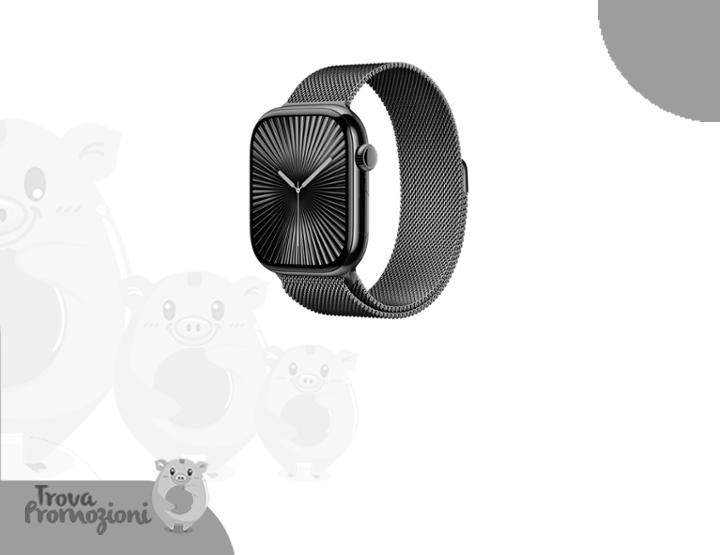 ๐๐ผ Apple Watch Series 10 GPS + Cellular 46 mm Smartwatch con cassa in titanio color Ardesia e cinturino Sport Loop Ardesia - M/L. Fitness tracker, app ECG, display Retina always-on, Carbon Neutral