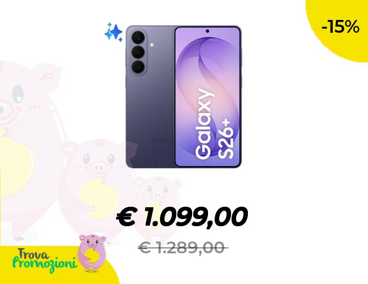 ๐๐ผ Samsung Galaxy S26+ Smartphone AI, 256GB, Processore avanzato, Assistente Foto, Creative Studio, Camera 50 MP, 4900 mAh, Cobalt Violet