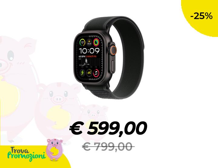 ๐๐ผ Apple Watch Ultra 2 GPS + Cellular 49mm Cassa Titanio Nero con Nero Trail Loop - S/M