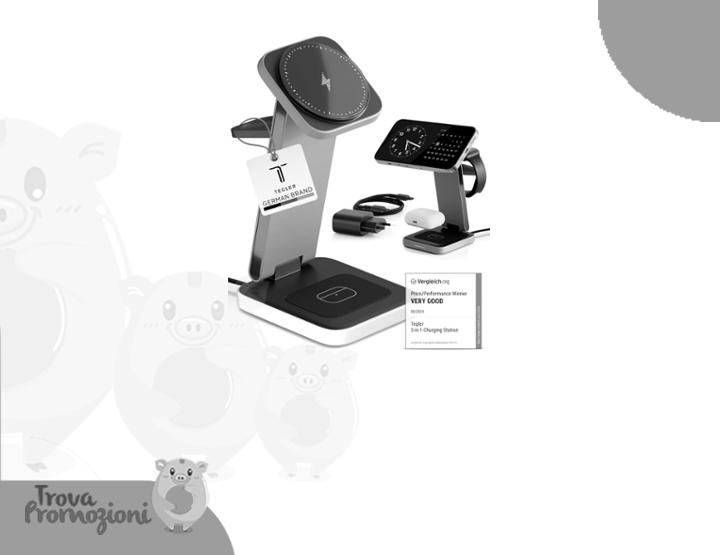 ๐น Ricarica 3 in 1 pratica e veloce โ carica contemporaneamente smartphone, smartwatch e cuffie wireless con potenza fino a 15 W.