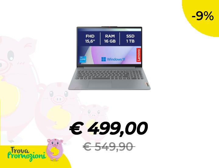 ๐๐ผ Lenovo IdeaPad Slim 3 Notebook 15,6โ FHD (1920x1080), Intel Core i5-13420H, RAM 16GB, 1TB SSD, Grafica Integrata, WiFi 6, Windows 11 Home - Arctic Grey
