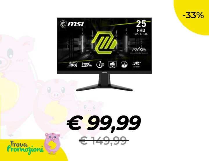 ๐๐ผ MSI MAG 256F Monitor Gaming 24,5" FHD - Pannello IPS Rapid (1920 x 1080), 180 Hz / 1ms GtG, 127% sRGB, Design senza cornice, HDR Ready - DisplayPort 1.2a, HDMIโข CEC, Nero
