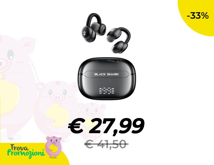 ๐๐ผ Black Shark Auricolari a clip, auricolari aperti, doppia modalitร di musica e gioco, design leggero e display digitale da 5 g, chiamate DNN chiare, tempo di riproduzione 50 ore, vestibilitร comoda per