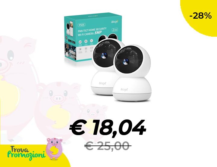 ๐๐ผ Alaga Telecamera Wi-Fi Interno 3K, Videocamera Sorveglianza, 5G, AI Rilevamento del Movimento, Visione Notturna, Compatibile con Alexa e Google Assistant, 2PACK(Include 3 mesi di archiviazione cloud)