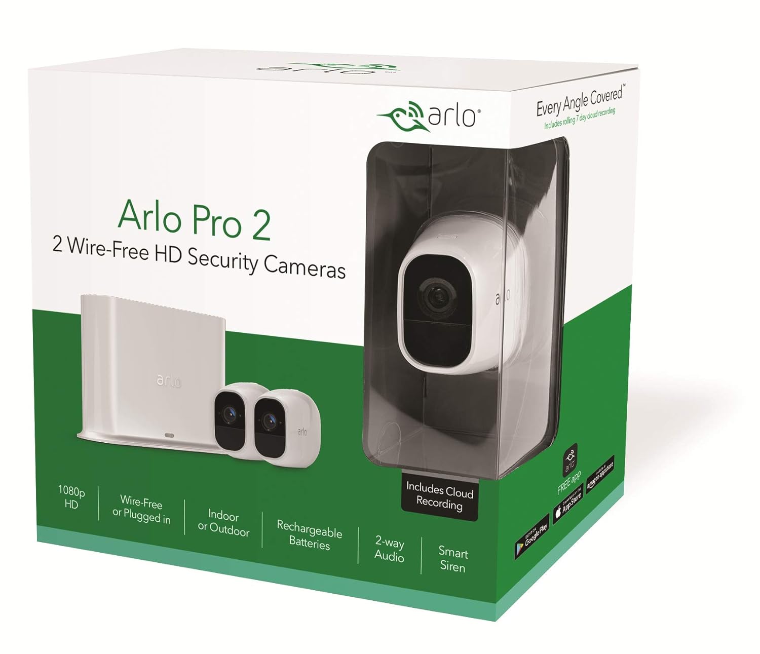 πΈ Arlo Pro2 VMS4230P Kit Base Sistema di Videosorveglianza Wi-Fi con 2 Telecamere di Sicurezza, Audio 2 Vie, Batteria, Full HD, Visione Notturna, Interno/Esterno, Vcr Opz, Alexa e Google Wi-Fi